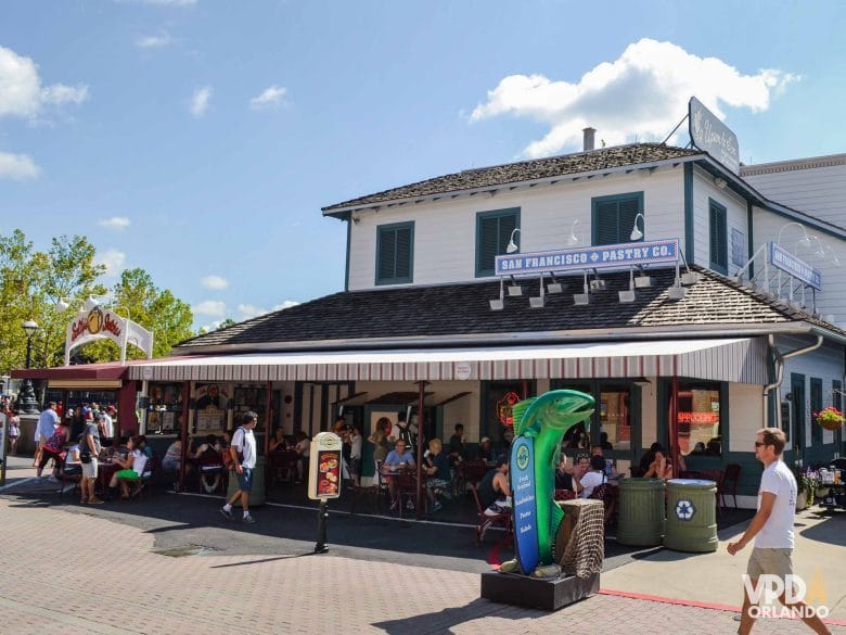 Esse café funciona no estilo quick service e serve algumas opções de lanches e bebidas inspirados em filmes queridos da DreamWorks Animation. Mas, a inspiração é só no nome dos itens mesmo, viu? Não tem nenhuma comidinha temática de fato. O menu inclui opções como pizza, beignets, donuts e até bao.
