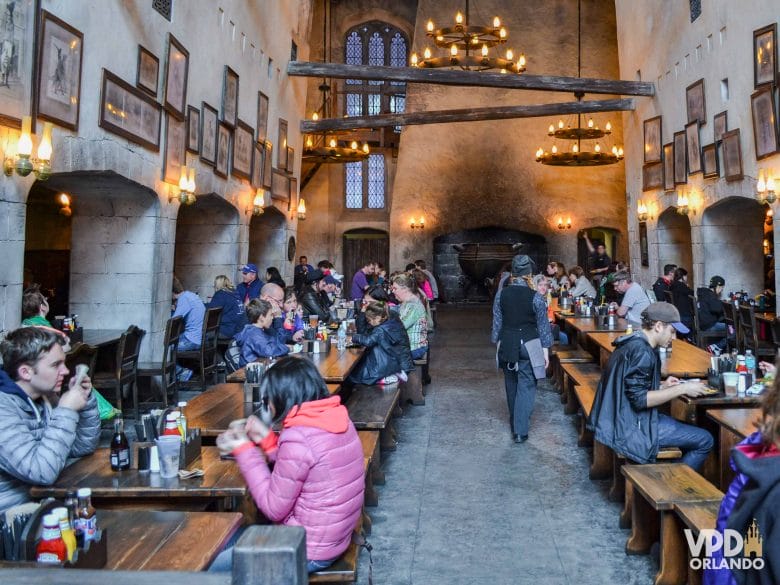 Apesar de ser um quick service, o Leaky Cauldron, ou Caldeirão Furado para quem leu os livros do Harry Potter em português, serve boas opções de almoço, principalmente para fugir do fast food. Tem peixes, carnes e algumas opções fortemente inspirados na culinária inglesa. De ponto fraco, fica o cardápio de sobremesas. Para quem quer um docinho depois do almoço, o melhor mesmo é dar uma passada na Florean Fortescue’s Ice-Cream Parlour e comprar um sorvetinho. Clique aqui para ler nossa avaliação completa do Leaky Cauldron.
