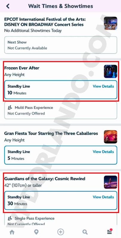 Isso tudo é muito bom, mas maravilhoso mesmo é ver os tempos de fila despencarem rapidamente no app da Disney. Uma dica: lembre-se que até o último minuto de parque aberto, os visitantes do dia de parque ainda podem entrar numa fila. Ou seja, no começo da festa, pode ser que algumas atrações mais populares – como a Seven Dwarf Mine Train no Magic Kingdom, ou o Slinky Dog Dash no Hollywood Studios, ou ainda a Guardians of the Galaxy no Epcot – estejam com uma fila acumulada. Minha recomendação é nunca começar por estas atrações “estrelas” de cada parque porque a fila delas devem ficar ainda menores depois da primeira hora de evento.