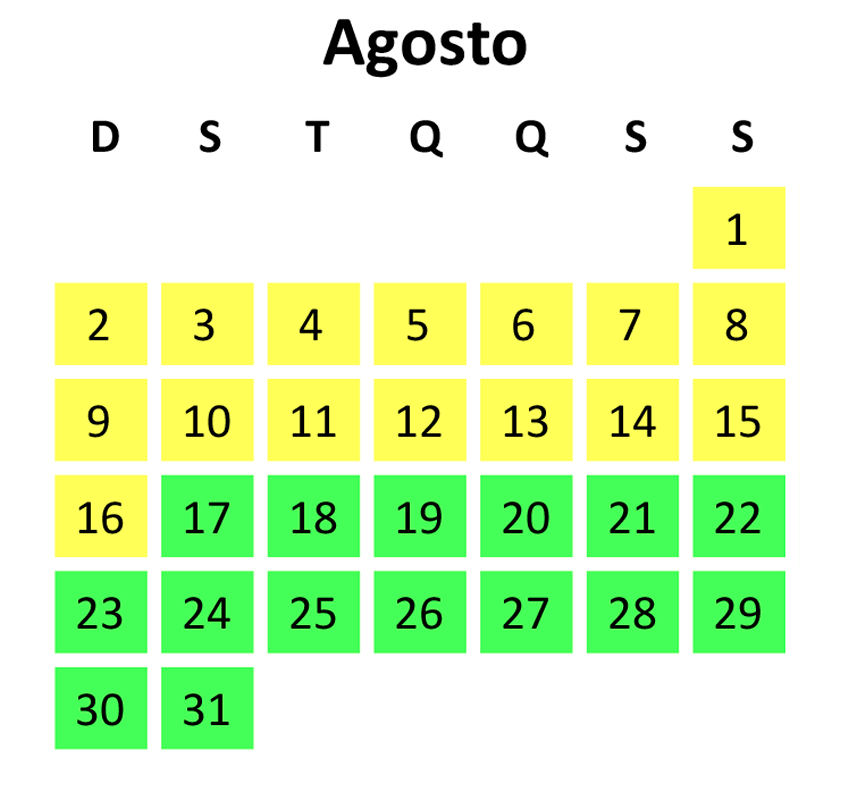 O mês de agosto começa mais cheio, assim como Junho e Julho, por causa das férias de verão americanas. Apesar disso, diferente dos meses anteriores, os parques vão gradativamente se esvaziando conforme o final das férias vai se aproximando, até que ficam muito mais agradáveis no final do mês. Por isso, se puder escolher, a dica é tentar deixar as férias em Orlando marcadas para a segunda quinzena de Agosto.