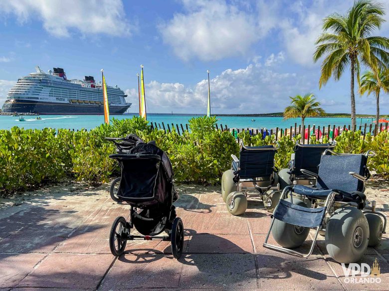 Em Castaway Cay, o navio para bem pertinho das praias, então caminhar até lá é super rápido. Ainda assim, pra quem não tiver afim de andar, logo ali na entrada da ilha, a Disney também disponibiliza uma espécie de trenzinho que roda o dia todo, fazendo o transporte para as praias familiares (que ficam mais próximas ao porto), para Serenity Bay, que é a praia exclusiva para adultos e fica um pouco mais distante, e depois de volta até o navio.
