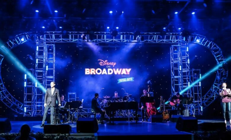 Festival of the Arts do Epcot acontece sempre no início do ano e conta com quiosques de comidinhas, atividades especiais, apresentações musicais e mais! Essas apresentações são parte do Disney on Broadway Concert Series, onde atores e cantores da Broadway apresentam canções de musicais da Disney.