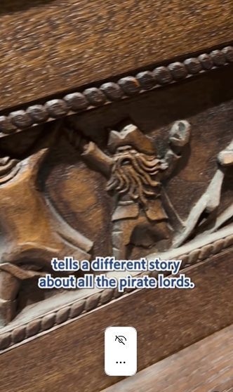 Através de um vídeo publicado nas redes sociais, é possível ver alguns pedacinhos de dois espaços que compõem o lounge. No Captains’ Quarters, figuras de madeira moldadas à mão nas paredes contam uma história diferente de piratas.