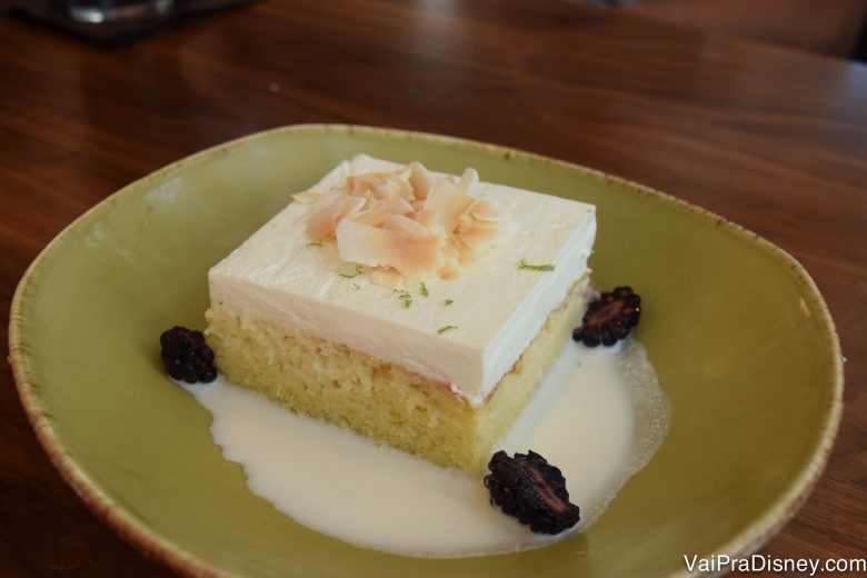 A versão do Frontera Cocina na verdade chama cuatro leches (4 leites) ou seja, traz um leite a mais, além de ter um toque de limão e vir acompanhada de umas amoras para decorar. Super levinho, molhadinho e refrescante!