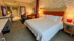 Para as crianças mais aventureiras, fãs de dinossauros e Jurassic Park, um outro quarto temático interessante da Universal é o do Royal Pacific Resort, que traz uma decoração inteirinha sobre os filmes dessa saga. Já dá para curtir muito de Jurassic Park no Islands of Adventure, mas é inegável que este quarto ficou muito legal, até mesmo para crianças mais velhas que já estão em outra fase.