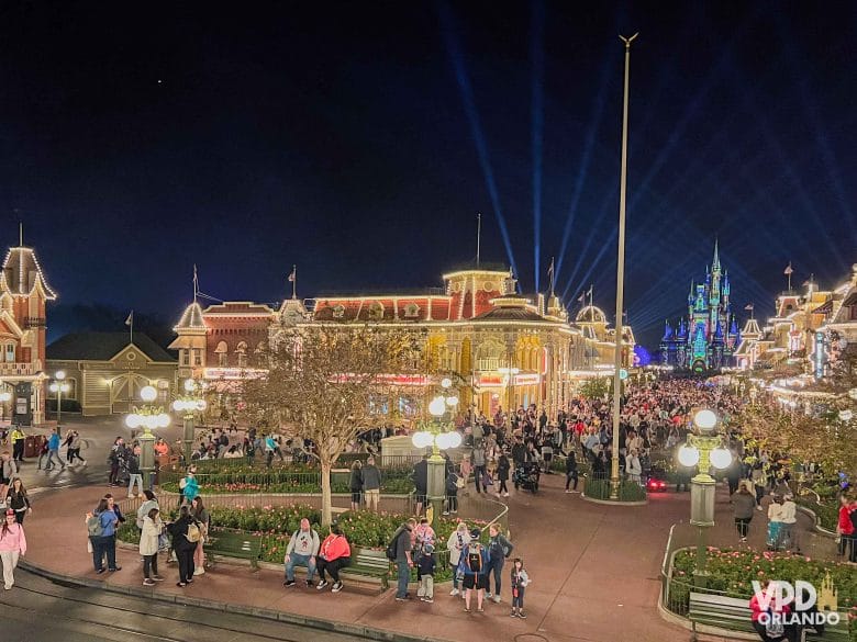 Para assistir aos espetáculos que acontecem no Magic Kingdom, não é só chegar. A parada diurna você até consegue ver bem em vários pontos do parque, mas a noturna eu recomendo assistir na Main Street, porque acho que o cenário fica mais bonito e você já fica ali para assistir ao show de fogos depois.