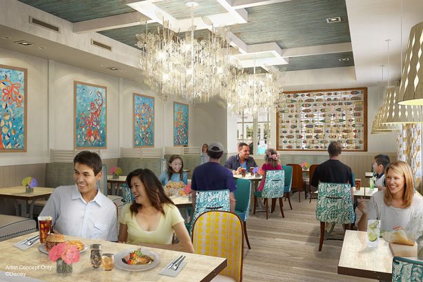 O novo restaurante Table Service chamado Sebastian’s Bistro ficará na área Old Port Royale, que o centrinho onde fica a recepção e uma área na beira do lago. Ele substitui o antigo Shutters, e a inspiração do restaurante é no Caribe, trazendo opções de comida fresca e com frutos do mar em peso – daí o nome em homenagem ao Sebastião, amigo da Ariel.