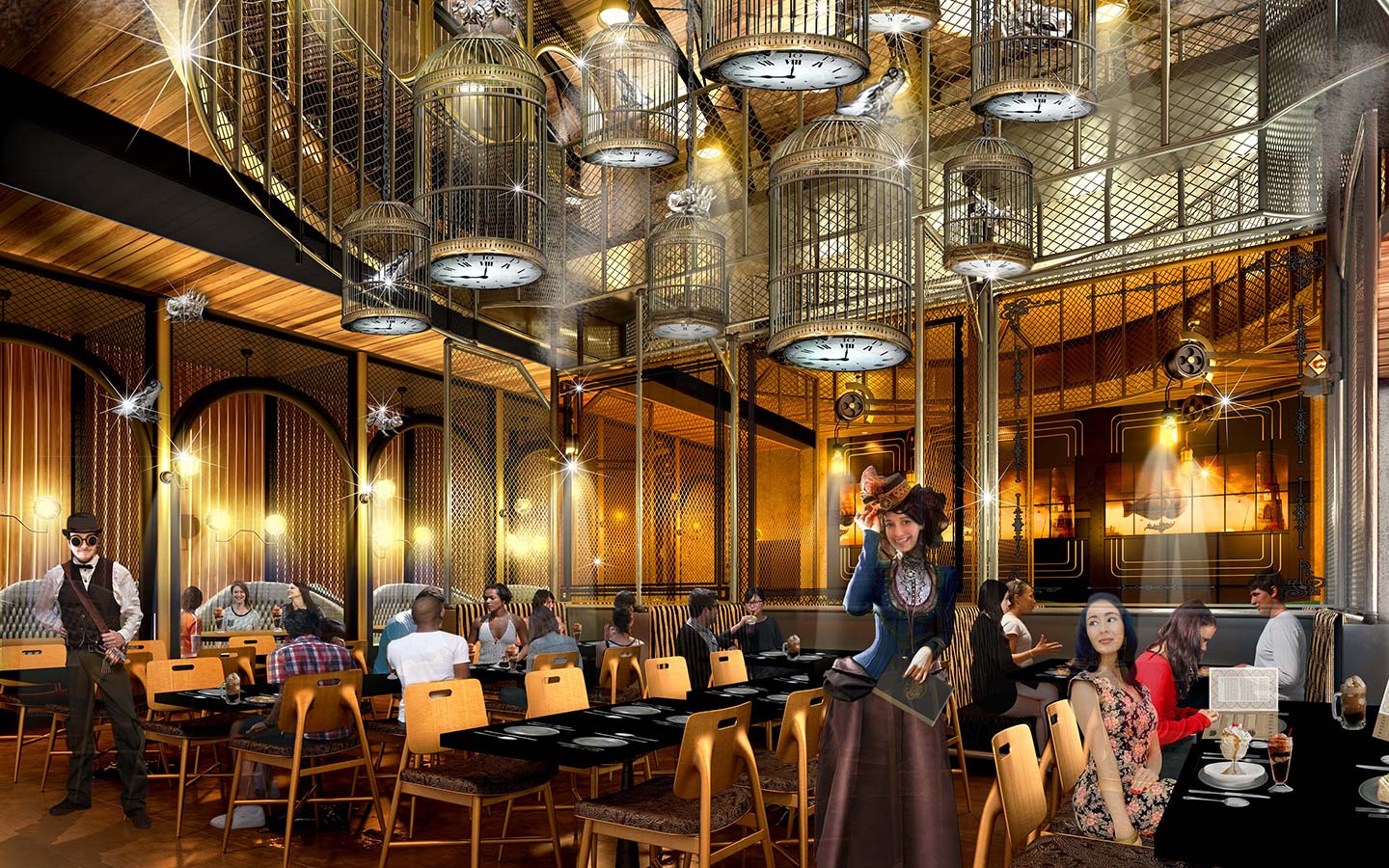Segundo o que a Universal já divulgou, eles vão caprichar na decoração desse restaurante, para te fazer sentir como em uma fábrica de antigamente. A Universal tem sido mestre em tematização nas suas últimas novidades, então a gente sabe que pode esperar algo muito bem feito e grandioso. A imagem de divulgação já ajuda a sanar a nossa curiosidade, pelo menos um pouquinho.