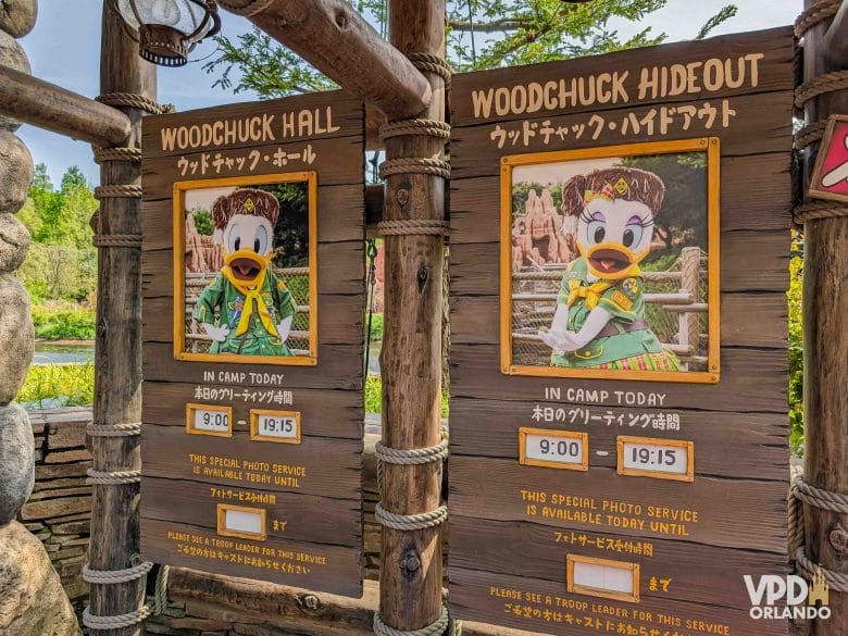 O Camp Woodchuck é uma área da Westernland toda tematizada como um espaço de acampamento com os sobrinhos do Donald. É ali que fica o Woodchuck Greeting Trails, que traz o encontro com a Margarida e o Donald em seus trajes de acampamento.