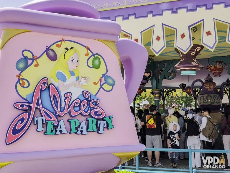 Alice’s Tea Party: xícaras que ficam girando sem parar e as crianças adoram. Já para os adultos, é a mesma labirintite de sempre, agora do outro lado do mundo.