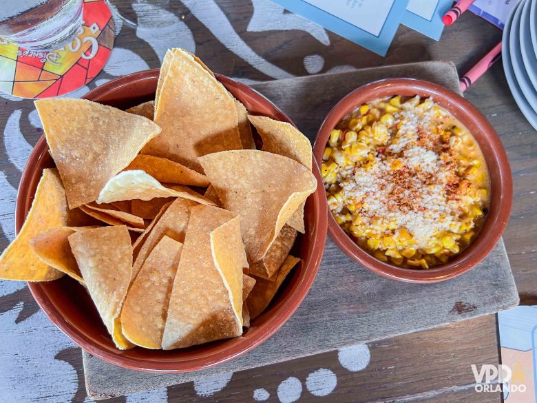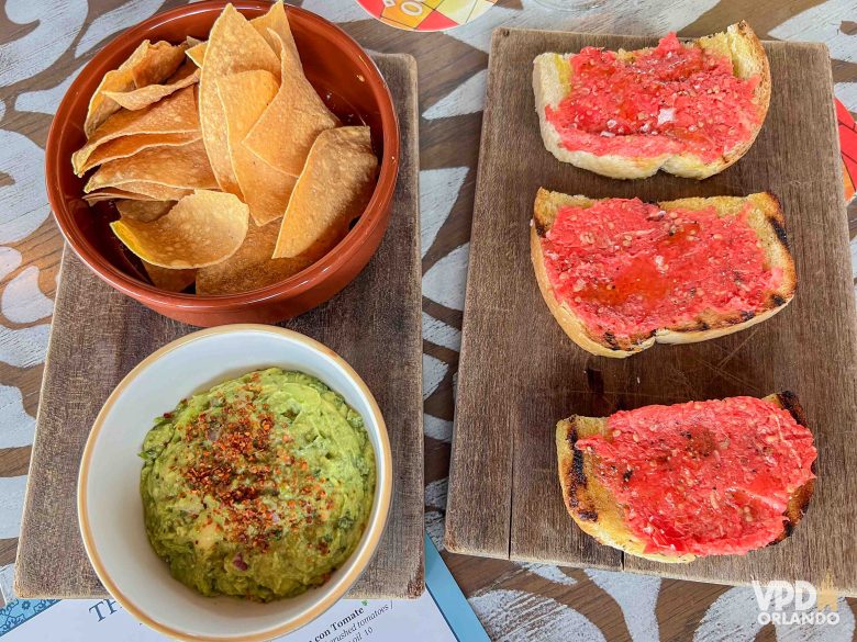 Na nossa última visita, estávamos em um grupo grande e pedimos algumas entradas para compartilhar. Apesar de ter várias opções gostosas e ser difícil de decidir, escolhemos o guacamole, pão com tomate, chips de tortilha com queijo e o roasted corn dip, que é um prato com milho assado, parmesão e aioli. Para beber, a gente pediu uma sangria, que é especialidade da casa e é fantástica.