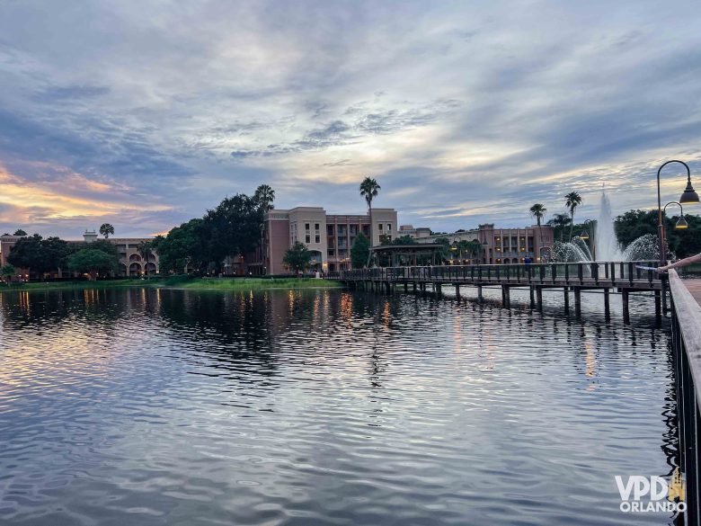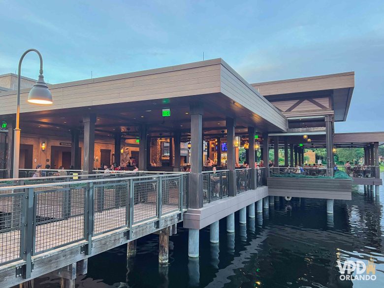O Three Bridges fica no fundo do hotel, bem no meio das pontes que atravessam o lago – por isso este nome “three bridges” (três pontes, em inglês). Aliás, falando no nome super enorme desse restaurante, vale explicar uma coisa para evitar confusão: ao chegar no Coronado Springs, todas as placas que indicam a direção do restaurante vão fazer referência apenas ao Villa del Lago. Three Bridges Bar & Grill e Villa Del Lago se referem exatamente ao mesmo espaço, mas normalmente você encontra um nome ou outro, tá?