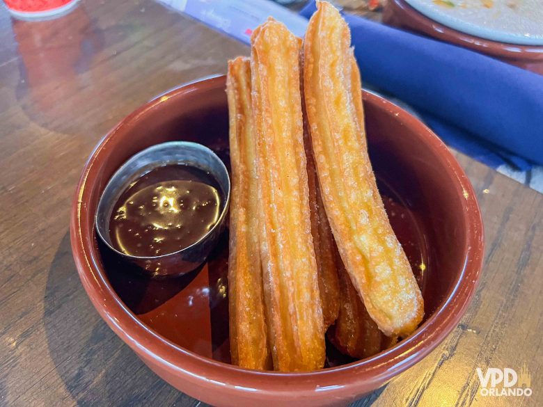 A gente pediu uma sobremesa só porque as crianças queriam muito, todo mundo já estava mais do que satisfeito. Eles escolheram uma cestinha de churros com calda de chocolate. Faltou o doce de leite? Faltou, sem dúvidas! Mas ainda assim, apesar de não ser incrível, estava bem gostoso também.