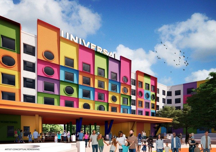 Outra novidade é que o novo parque também contará com um hotel super colorido com 300 quartos. Ele ficará bem na entrada do Universal Kids Resort e seguirá toda a temática do parque. Olha só!