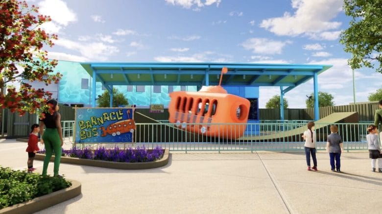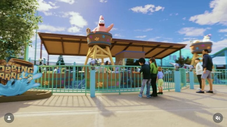 Essa área também vai ter um espaço para os pequenos se molharem e um dos elementos mais icônicos do cenário será a famosa casa do Bob Esponja em formato de um abacaxi.